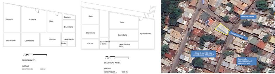 Terreno de 180 Vrs2 con vivienda de 2 niveles. Primer nivel: Negocio, sala, cocina, 3 dormitorios, 2 baños, garaje. Segundo nivel: 2 apartamentos con sala, cocina, 1 dormitorio y 1 baño.