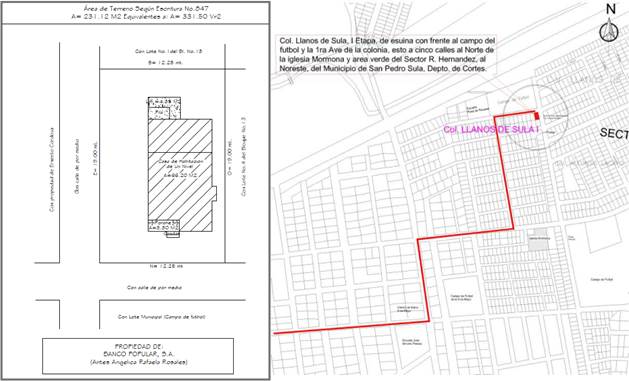 Col. Llanos de Sula, I etapa, Sector R. Hernández, lote No.2 del bloque No.13, frente al campo de futbol que se ubica a una calle al este desde el Centro Educativo Rosa de Roussel, San Pedro Sula, Cortés.